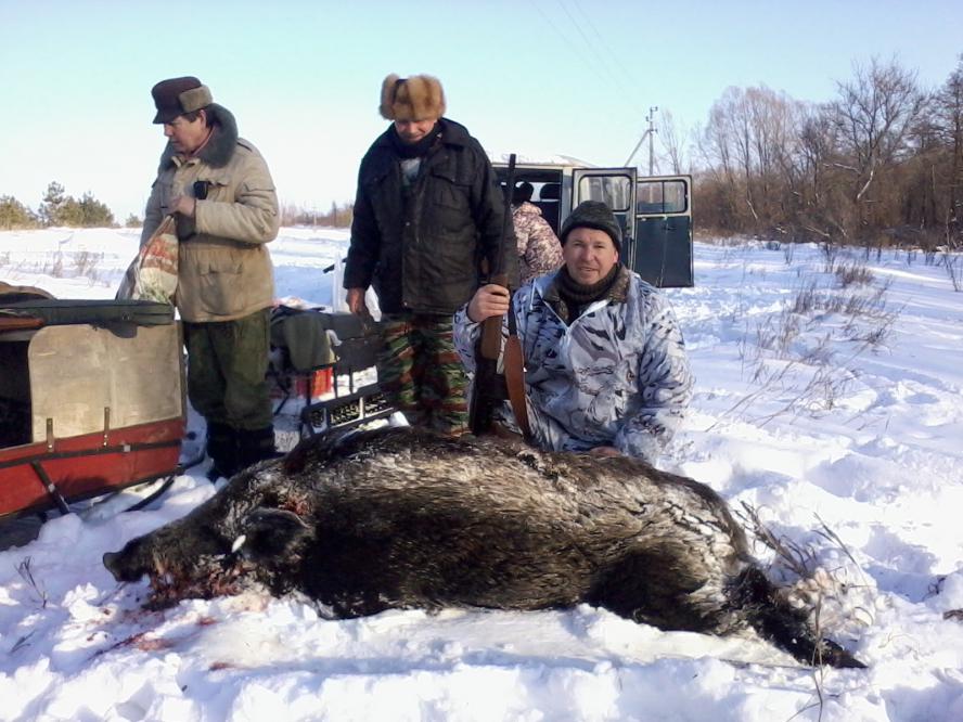 Закрыли сезон загонных охот у соседей,в Ульяновской области .1 день -собаки выгнали кабана на стрелков.Взят с гладкого.