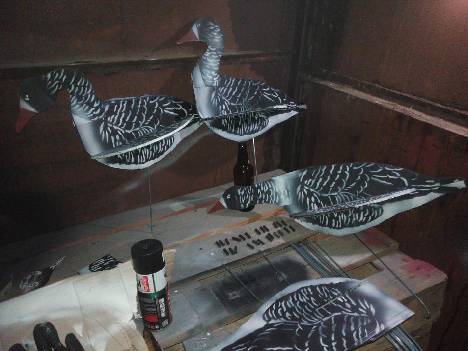 День стал чуть длиннее, местами пригревает солнышко... и смотрю не только у меня одного засвербило! ![]() ![]() ![]() В очередной раз перечитал ваши старые отчеты об успешных (да и безуспешных тоже) охотах, и понял, что дальше совесть не позволяет общаться с вами втихаря))) Позвольте, представлю вам на суд, скажем так отчет, но пока не об охоте, а как я в это втянулся... между прочим не без вашей помощи)))! Я здесь новенький, в прошлом году примерно в это же время года добрался до самарского форума и "ушёл с головой" на неделю именно по теме "Охота на гуся"... Когда очнулся - понял, что оооочень хочу на гусиную охоту!!! Будучи обладателем новенького турецкого полуавтомата Пегасус, а после изучения просторов интернета еще и недипломированным теоретиком по гусиному вопросу, я лелеял надежду принять участие хотябы в открытии весенней охоты. А в связи с отсутствием опытных учителей, решил подойти к вопросу самостоятельно, но по-серьезному! Итак, о чем в принципе хотел повествовать - изготовление профилей гуся своими руками: Взял несколько панелей ПВХ (белых матовых), кусок сендвич-панели (из нее делал головы к профилям), затем скачал фото гуся с интернета, разделил его на несколько частей и каждую отдельно распечатал на принтере (т.к. корпус гуся оказался значительно крупнее стандартного листа А4), и соорудил 3Д макеты гусей. Идея была сделать именно 3Д-профиля, которые видно и сверху и сбоку как полноценные чучела, но в то же время собираются и разбираются. Весь процесс постараюсь представить на фото ниже, благо они еще у меня сохранились. С помощью баллончика матовой черной краски разукрасил профиля, оставив кончики крыльев и хвоста белыми. Первоначально мне казалось, что этого будет достаточно. Но аппетит приходит во время еды!))) Естественно не хватало оперения!!! Взяв в руки распечатанные фотки гуся и вооружившись канцелярским ножом, после пары часов работы у меня появился замечательный ТРАФАРЕТ! Пришлось докупить баллончик белой матовой краски и по черному корпусу вывести замечательные перышки. Последний штрих оранжевым цветом на клюв, и моя стая заговорила, загогатала))) Всё как положено: кормящиеся в разных позах, и пара сторожевых. В заготовках у них разница только в форме шеи, корпуса одинаковые. В качестве стойки использовал отбитые старые электроды, поэтому на ветру вращаются как флюгеры. Не сделал только оранжевые лапки... но к этому сезону доведу до ума))) Стая в 12 голов у меня уместилась в ашановскую сумку. P.S.: когда готовил, боялся, что могу даже и не увидеть настоящих гусей на охоте, всякое же бывает... думал, лишь бы не перегореть, не разочароваться... Но прошлогодняя весенняя охота меня побаловала! С первого выезда я взял двух белолобиков, а двое моих друзей, такие же начинающие, тоже с трофеями - еще белолобик плюс гуменник. Так что две недели работы над профилями не прошли зря! Всё, чем хотел поделиться - рассказал. Можете судить строго и закидывать тапочками мою идею ![]() По фоткам ограничение до 5шт, постараюсь добавить следующим сообщением))) |