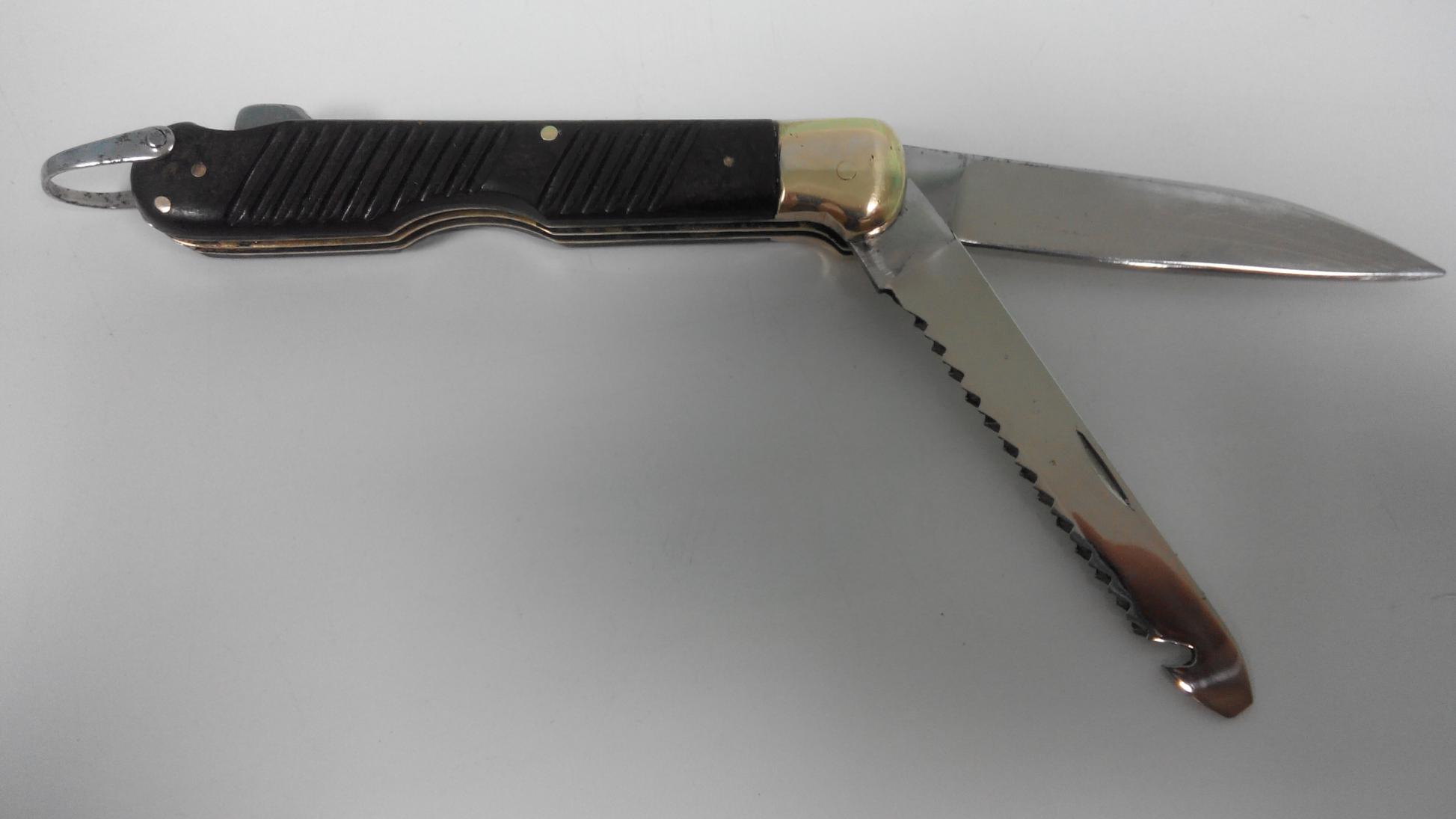 Глянул сейчас фото советских ножей. Оказывается как много из них побывало в моих руках! Белка, рыбки, космонавтики, выкручивающиеся, раскладывающиеся черти-как. Жаль, что не сохранил для истории. Хотя осталась парочка. Один с экстракторами для 16, 12 калибров. Другой складник ВВС СССР двухпредметный. Клинок и необычная пила-стропорез. Тесть подарил. Был ржавенький и рукоять повреждена. Я его восстановил. Ездит теперь в ящичке в быстром доступе в вагене жены. Мало ли, ремень перерезать помочь кому-либо нужно будет... Сам же я из дома без ножа не выхожу практически. Поэтому в своих бибиках нож не держу.