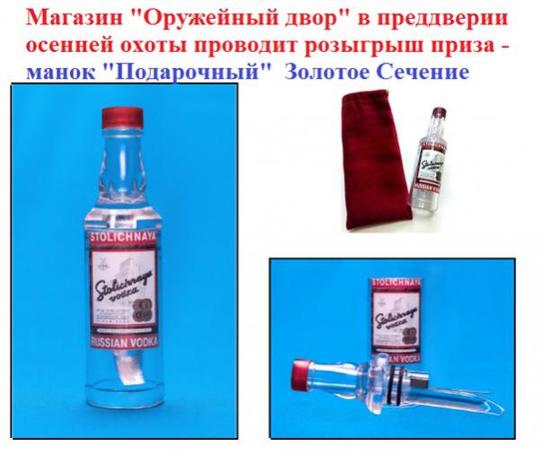 Манок на утку «Подарочный» - Золотое Сечение (изготовлен из ударопрочного полистирола в форме бутылки водки «Столичная».) Условия розыгрыша: 1. Быть подписчиком группы 2. Закрепить данное сообщение на стене своей страницы* 3 Сохранять данное сообщение до окончания розыгрыша.* Победитель будет определен с помощью специального приложения 24.08.2018г Последний раз редактировалось Оружейный двор; 10.08.2018 в 13:48. |