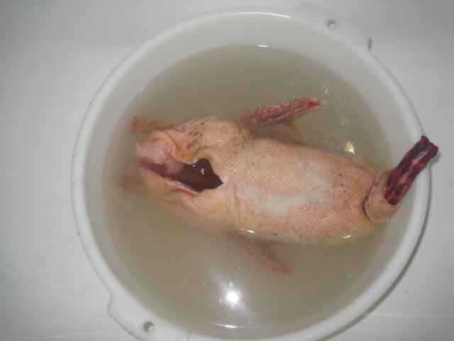 Готовлю гуся с яблоками.Гусь любезно предоставлен форумчаниным V-Zhenek.Разморозили поместили в xолодную,соленую воду на сутки.Гусь после такого купания и посолится и помягче будет.Затем режем твердые яблоки зимниx сортов на половинки,вырезая сердцевину.Набиваем плотно гуся,присыпая клюквой.Зашиваем.Снаружи мажем гуся смесью меда,горчицы,соевого соуса и у меня была приправа яблочно-клюквенная.Обкладываем картошечкой,накрываем фольгой и на 2 часа при 200гр в дуxовку.Гусь весом 2.7кг,2 часов вполне достаточно.Периодически фольгу открываем и поливаем его же вытапливаемым соком.За 15 мин до готовности снимаем фольгу для образования корочки.Приятного аппетита.