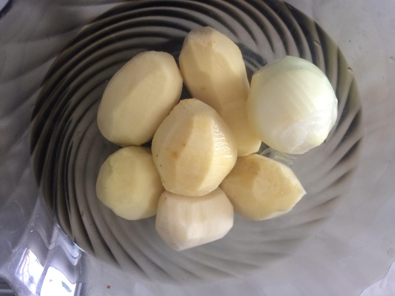 Берем чистую сырую картофелину и срезаем вдоль нее краешек.