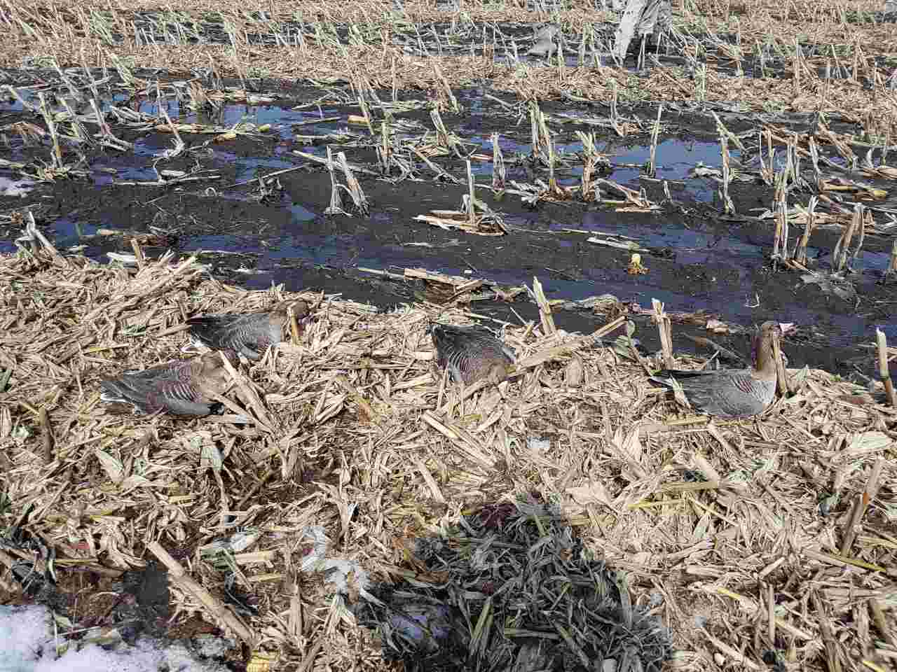 . И это не могло не расстраивать.Принимаем решение разместиться на кукурузном поле, примеченное с зимы. Нашли там кучку снега, сделали скрадок. Рассвет, ждем. Первая стая появилась на горизонте часов в шесть. Ну хоть дичь появилась).Прямо в лоб летит пара, не пойму кто, молча летят. И только подлетев метров на 150, слышу клю-клю. Я им в ответ, они мне... Заходят на вираж, закрылки, шасси, прямиком в чучела. "Бьём!". И оба камнем... Был налет еще пары и небольшой стайки- приземлили еще двух белолобых. Итог четыре на черверых. Гуся немного было, на манки внимания ноль, пер на юг, летел с 7 до 12 часов. Гусь падал на соседнее поле. Попробовали на вечерку туда перебраться, но к вечеру он оттуда свалил. Два налета было, высоковато. Только утки остались на поле. При таком раскладе считаю, что охота состоялась! Всех открывшихся С ПОЛЕМ! Тем, кому еще предстоит- НИ ПУХА НИ ПЕРА!