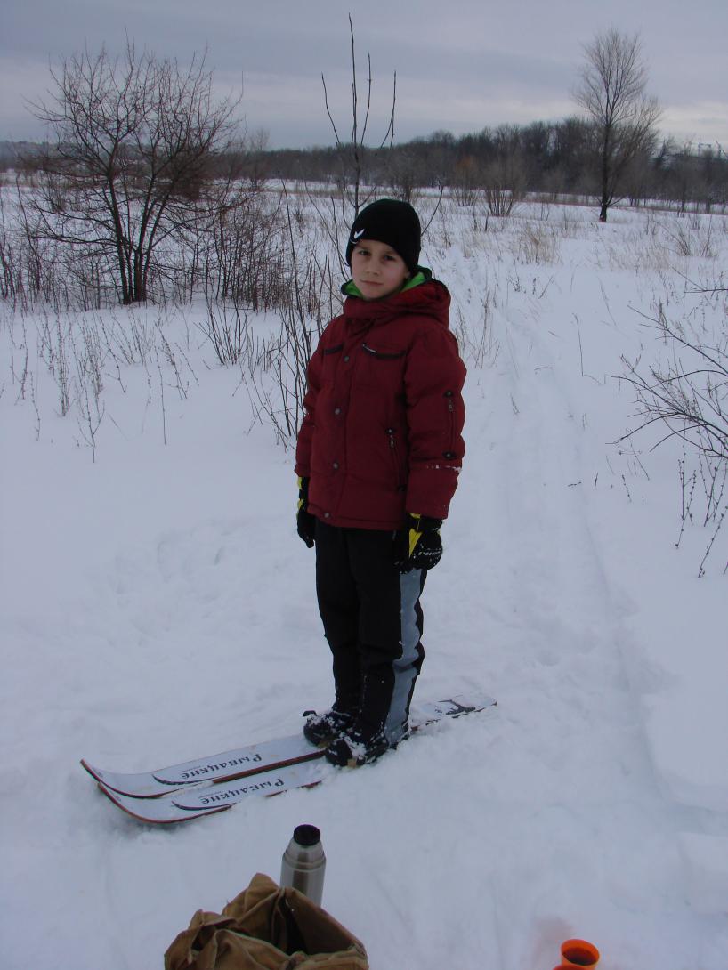 Фото с чаем сделаны на предварительно утоптанной площадке. А так сын шел по целине или за мной по свежей лыжне.