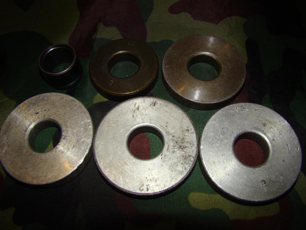 1. Дал брату новую гильзу - сказал сделай точь - в точь, им пользовался первый самокрутный сезон, довольно строгое колечко, только без фаски под рант 2. Набор СССР 3 разных кольца: №1 №2 №3 идут по строгости, метал - сплав светлый 3. Колечко №3 СССР темный металл 4. Колечко Lee, им в основном и пользуюсь. |