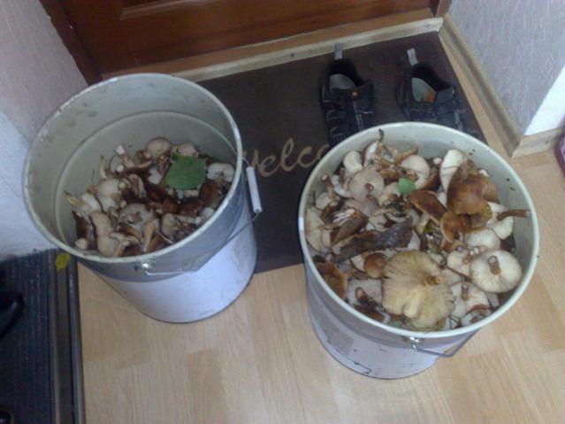 В итоге с 8-00 до 12-00 набрал четыре ведра опят и ведро черных груздей в смеси с белыми!!!