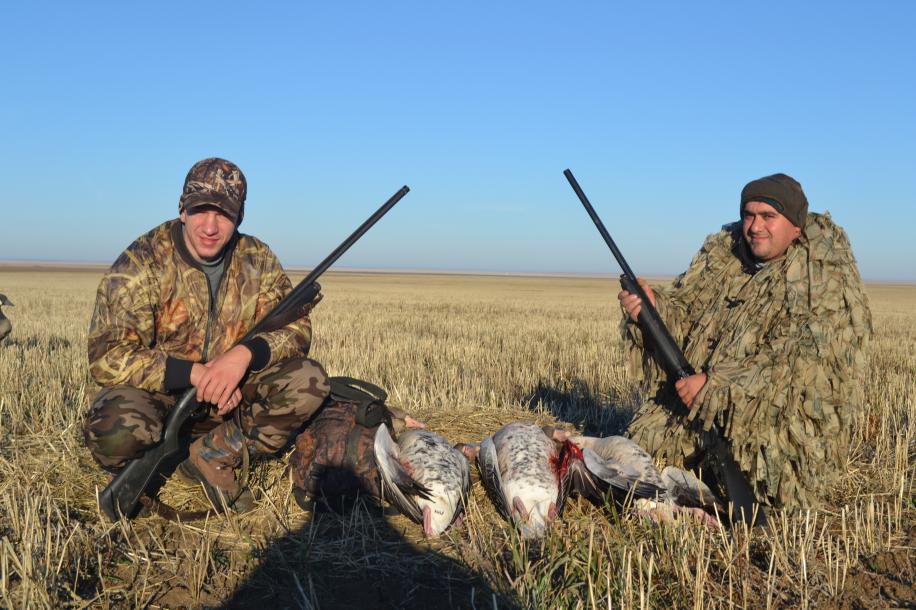 15.10 рано по утру команда в составе 6 человек (из участников форума ещё Махх163) выдвинулась в Оренбургскую губернию, Светлинский район в, уже становящуюся традиционной, поездку за осенним гусем. Команда не первый раз охотящаяся вместе, хотя и географически разбросанная: Сызрань, Тольятти, Ульяновская обл. Светлинский район...если глянуть на карту, то станет ясно, что это, если и не жопа цивилизации, то это самое место Оренбургской губернии - точно. Но, нам, маньякам, разве 1200 верст в один конец - крюк? В общем два мобиля, один с прицепом и в путь. После Кинеля, перед прудами, как раз на рассвете видим несколько стай гуся - добрый знак. Бузулук, Оренбург, Орск, Домбаровка, Ясный - нас встречают. Уже темно. Ужинаем, присоединяется третья машина и уходим в степь в Светлинский. Ночуем на берегу озерца рядом с Казанчой. В полутора килиметрах озеро Жетыколь, одно из самых крупных мест остановки пролетного гуся. Там его собирается в некоторые моменты больше 150 тыс. Вылет на кормежку идет волнами на протяжении больше полутора часов. Звук взлетающего гуся, если находишься на берегу, напоминает звук приближающегося поезда метро. Реально. С непривычки можно окуеть . Гусь и казара идет волнами и эшелонами, всех мастей и расцветок, но преобладает серый гусь. И разлетается все это охотничье счастье километров на 50, а то и больше в разные стороны. Причем ввиду полного отсутствия пограничников на вертолетах, может легко уйти и в Казахстан )). Охотхозяйства вокруг большей частью принадлежат печально знаменитому своими ценами на охоту Оренбургскому охотклубу. Но, отдать ему должное, не проводится охота на воде, что позволяет сохранить это уникальное гусиное место. Охота на полях и на отлете не ближе 150 метров до озера. Но нам не страшны их цены - мы дикарями. Переночевав и подмерзнув ( -4 ночью) принимаем решение эту поездку провести в комфорте. Передислоцируемся в Коскуль, где снимаем дом за 500 руб/сутки. Вода, газ, отопление, спальные места на всех - что еще надо? Тут же выдвигаемся в поля Отъезжаем километров 10 и сразу же находим два поля с гусем. Голов 500 - 700. Но одно поле за асфальтом, на территории не "нашего" хозяйства. Разбиваемся на вечерку. Трое садятся группой, трое поодиночке. Итог вечёрки: казарка и пара белолобиков. Начало неплохое. Вечером первое " с полем", ужин и спать. Подъем в 4 и в поле. Утро и еще 4 серых гуся в копилку команды. В общем режим в поездке простой: 4-00 подъем, завтрак, выезд (около 10 км), охота, разъезды по полям, определение места вечерней охоты, окапывание, возвращение в деревню, обед, сон, выезд на вечерку, возвращение, ужин, карты по настроению, отбой. Были дни удачной охоты, были пустые. Были интересные выстрелы и поиск подранков за 500 - 800 метров с загоном цепью ))). Была посаженная в 10 метрах от скрада, на 10 чучел и манок, краснозобая казарка. Был битый метров с 30 белолобик, упавший, точнее спикировавший в поле под 45 градусов и ударившийся о земь как кирпич, который подобран тряпкой, пролежав полчаса рядом со срадом, потом погружен в машину, перевезен, выложен на землю и..... убежавший через пять минут )))). Но в ночи был найден в 20 метрах, заныкавшимся в скирду с соломой - от нас не уйдешь))) . Был перевиден стрепет. Были обидные промахи и красивые выстрелы, веселые посиделки и временные размолвки. Народу в этом году очень много: на каждое перспективное поле 2-3 кома