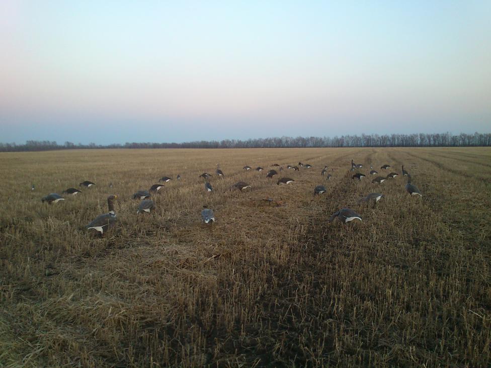 Начну с самого начала.Незадолго до открытия,12.04 произвели разведку ,входе которой было обнаружено большое скопление гуся,около 3000 голов,мирно поедающего неубранное просо.13.04 в 12-00 отправились на место предстоящей охоты.По прибытию обнаружили,что место занято.И,как оказалось,они уже открылись с утра в пятницу Разогнали гуся.Мы в скором порядке отправились искать новое место.Нашли.Оно представляло собой неубранное просяное поле,посреди которого была большая лужа.Ночью оборудовали скрадки,расставили профиля,чучела и легли отдыхать полные надежд. Ночь тянулась мучительно долго,каждые 15-20 минут смотрели на часы.Вот он,долгожданный звонок будильника.Попив чаю,собрали все необходимое,тронулись,нет,полетели по местам. Заря!!!Наверно нет ничего красивее.Как только рассвело,появились первые косяки гусей.Шли на запредельной высоте.Вокруг,как мухи, носились взад,вперед утки всех мастей.И вот оно,долгожданное гааа-гак.К нашим профилям,чуть заметно шевеля крыльями,приближалась стайка гуменников.Выстрелы..........!Не один гусь не пострадал.И так три раза за утро.Проанализировал промахи.Вывод:не учел сильный ветер.Гуси заходили по ветру и их скорость увеличивалась,хотя крыльями они почти не махали.Упреждение брал маленькое.Произвел работу над ошибками и был добыт селезень свиязи.А вот носастых больше не было. Вечером лета не было вовсе.Днем вокруг начали жечь поля,п...сы ![]() Сидели и гадали,дойдет огонь до нашего поля или нет.Короче вечёрка была испорченна.Утром следующего дня выдалось туманным.Гуси пошли только в 8-30,когда туман рассеялся.За утро был один налёт.Стрелял один раз,почему,сам не знаю.Выбил одного гуся.Очень рад! Вот такая охота у нас получилась. Вывод:стрелять надо лучше...