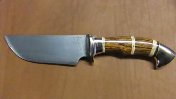 Расскажи, что за клинок? какая сталь? сами делали или покупной? чем точил? какие спуски? Какой угол заточки? как полировал?