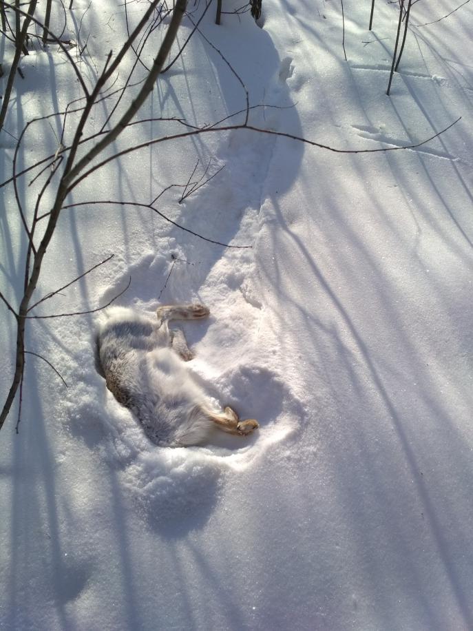 Шкурить даже не пытался, лисьей струганины не хотелось. Сейчас оттаивает и попробую на работе раздеть, с мерами осторожности, чтоб псы не наелись халявы.
