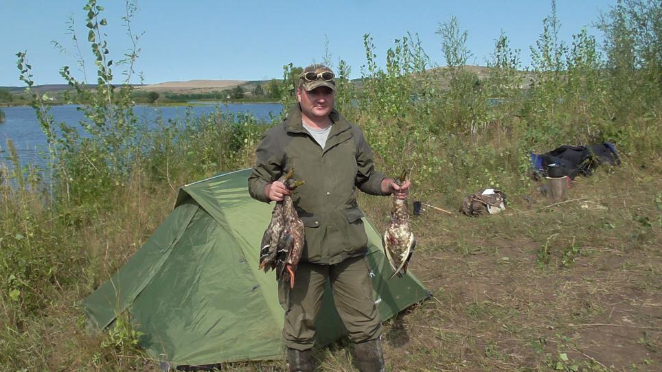 Сегодня сделали прекрасную вылазку всей семьёй. Супругу с дочерью высадил на озере, поставил им палатку, а сам уехал в угодья на охоту. Сначала прошлись по полям в поисках куропатки - никого не подняли, собакена у нас нет. Потом посидели на берегу протоки, посмотрели куда и как летает утка. Лысухи море, ничего не боятся, плавают, плещутся, ныряют, выясняют между собой отношения прямо возле нас. Не далее 12-15 метров. Выстрелов не боятся. Я сшиб "карыча" и ни одна лысуха даже носом не повела - так и плавали. Чудеса! Как в городском пруду. Пеганки такие же бесстрашные, однако ближе 20 метров не подплывали. Вечером был один налет, но мы его проморгали. Ничего, в следующий раз обязательно своё возьмем!!! По темну забрал супругу с озера. Она "настреляла" килограмма три карасей. Добытчица!
