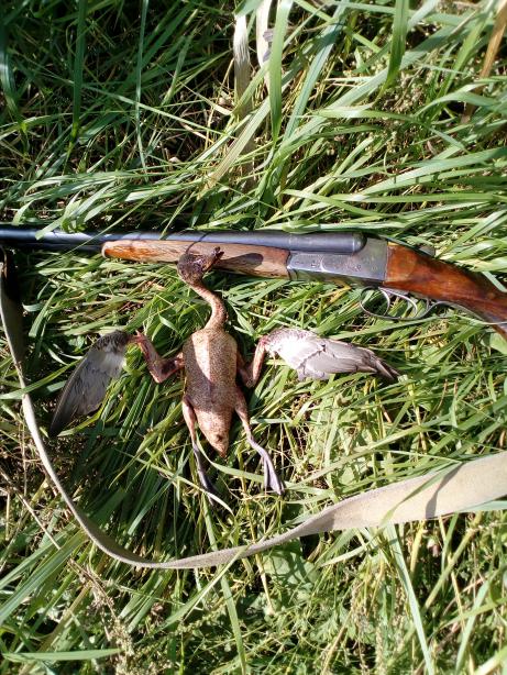 С утра, видели косулю, в темноте фарами осветили. Пошли вдоль озера, крякнул пару раз и в ответ отозвалась утку. Утки отзывались на другом берегу, а на нашей стороне, сначала кряхтел тетерев, затем гавкал козлик. Все же выманил трех утей и снял одну, первым выстрелом. Видел, что падает подранок, надо было вторым добирать, а я не стал жечь патрон и побежал к нему. Но было поздно, тот зараза убег с берега в камыш и скрылся. Досадно... Покатили в другое место, синхронными выстрелами, взяли крякву. Затем братья на перепелок, а я по грибы. Пара подберезовиков не устроила, и я засел на вяхиря, то и дело они кружили. Но я так не разу и не бахнул по ним. Братья взяли по паре перепелок... Переехали на другое поле, собрались уж домой и по дороге к машине подняли стаю куропаток. Разбили её на части и ходили выискивая в поле и в рядом растущем ивняке. В итоге 5 штук взяли. Открытие прошло на эмоциях!!! Домой увезли 1 крякву, 4 перепела и 5 куропаток.... Без фото, что-то торопились домой и не сфоткали... |