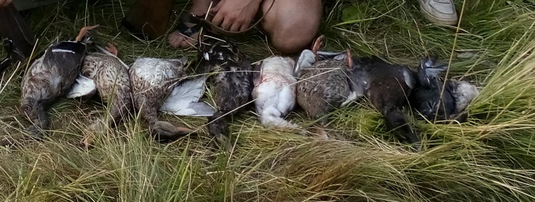 Вот моя вязаночка утка есть и не мало но уже шуганная, стрелял феттером 7,5 спортинг...класс патроны и денег стоят 10р