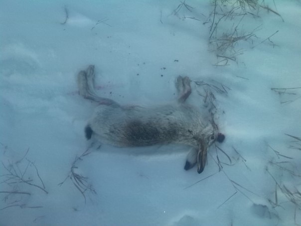 Ездили сегодня с товарищем закрывать год. Хоть свеженького и мало нападало,да плюс мело не хило вчера, а все ж таки следок свежий выискали. Вдоль посадки да в пашню. Пораспутывали, потропили, вытоптали - поднялся с лежки в пашне метрах в 40-ка (первый выстрел 54 средних шага), заяц оказался спортсменом, скорость набрал на форсаже космическую,первыми двумя "обзадил" его, третьим чуток зацепил. Дали облежаться, пошли по следу, пройдя километра 1,5 нашли теплую лежку (видимо услышал нас) и рванул в ближайшую посадку. В итоге Серега с ним в такие прятки наигрался!!! Тот видимо уже устал, да и подранен, пару раз обманул в посадке, прошел за спиной, но никак не хотел выходить из нее, а посадка широкая-метров 35, да густая. В итоге Серега таки обманул косого, первым выстрелом выгнал его из посадки (хотел прямо там приговорить,пока не свалил в дебри), а у же на поле окончил мучения нашего бегуна. Вот так и закончили сезон 2015. Всех с наступающим!!! А вот и наш спортсмен: