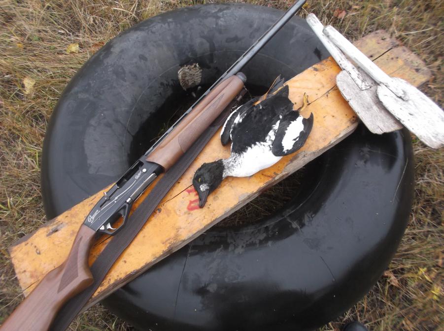 Люблю охотится средь недели.Сегодня прибыл в угодья в 8-00. Ни рыбаков ни охотников -красотища. Погода супер,дождичёк прошёл минут 10-15 назад. Тихо и тепло.Первую утю взял с подхода в луже, где по всем законам биологии её и быть не должно. Но утки наверное думают точно также и их там оказалось две. Первым выстрелом сбиваю взлетающую ближнюю утку на глушняк. А вот по вторую высадил 4 патрона и не попал метров с 20. Селезень (башку зелёную разглядел чётко) такие пируэты выказал, Что я только и смог сказать-Да как так. Ну ладно пусть живёт раз такой вёрткий. Достаю сбитую и пошёл дальше. А надо мной пролетают 7 лебедей. Красавцы. Иду дальше и уже на высоте 100 метров проходит стая из 8 крякашей. Так что утка ни куда не делась- просто искать надо. Ну нагулялся, подошёл к машине ,разрядился,зачихлился -как вдруг прямо надо мной проносятся 2 гоголя и без всяких заходов -разворотов плюхаются в старицу метров 100-120 от меня .Вот это наглость думаю. Хватаю ружьё и туда. Через камыш видно только одного, по нему и бью. Второй взлетает так что мне его не видно. Первый переворачивается кверх пузом и дрыгает лапками. Ну думаю все -готов . Но не тут то было . Гоголь вспоминает что он хорошо ныряет. И тут началось . Нырьк и нету. Вынырнет на 1-2 сек и опять нырьк на 20 -30 сек. А всплывает как подводная лодка с перескопом-только одна башка. Дистанция метров 50. Я 7 патронов сжог что бы его добить. Ныряет раньше подлёта дроби. Эх и птица .Вообще это первый мой гоголь.Но всё таки попал в голову и добыл. Охота вышла интересная .