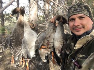 Закрытие в южных районах Самарской области. Поехали вдвоем с братом. Конечно, понимали, что гусь весь ушел, но в душе оставалась надежда на хорошую охоту. Пока ехали до угодий, никого в небе не видели. Встретились с форумчанином (Андреем-МР133), поболтали, обсудили текущую обстановку с гусями. И помчали мы искать гусей. Прокатавшись по полям, собрав и обработав полученную информацию, приняли решение испытать удачу на кукурузном поле. Следы присутствия гусей там были. ![]() Быстро все приготовили. Скрадок, конечно, соорудили на скорую руку. Заняли позиции, перекусили, запили и вот они- первые гуси!!! На бреющем, к чучелам, маним, круг, второй, один прям камнем падает в чучела. Кормился почти 9 минут и стал первым трофеем. Мелким оказался (тушка чуть больше крякаша).Ну а дальше стаи, стаи, налеты, некоторые гуси садились в чучела. Некоторые садились в 200сот метрах от нас, тем самым портя охоту. Радости полные карманы! За некоторыми подранками пришлось побегать. Гуся было немного: примерно 300-400 голов. Но охотой остались довольны на 100%. Закрытие состоялось! До встречи через год!