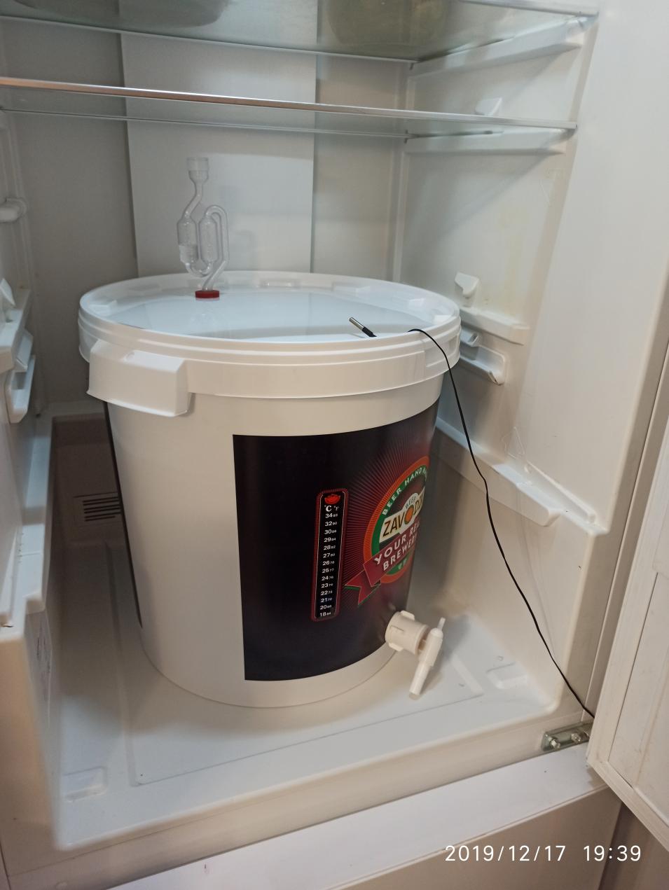 Примчал домой, выкинул все лишнее и вуаля! Уместился мой бочонок) вот только температура максимум 9 град можно выставить. Но, думаю, при рекомендуемом брожении 10-15, лучше 9, чем 23.