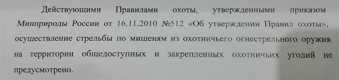 Пришёл официальный ответ из депа на счёт стрельбы по тарелочкам и мишеням в угодьях. Короче нельзя!!!