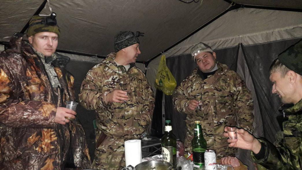 Сначала охотники идут на кабана, затем согласны и на утку, а в итоге убивают комаров.