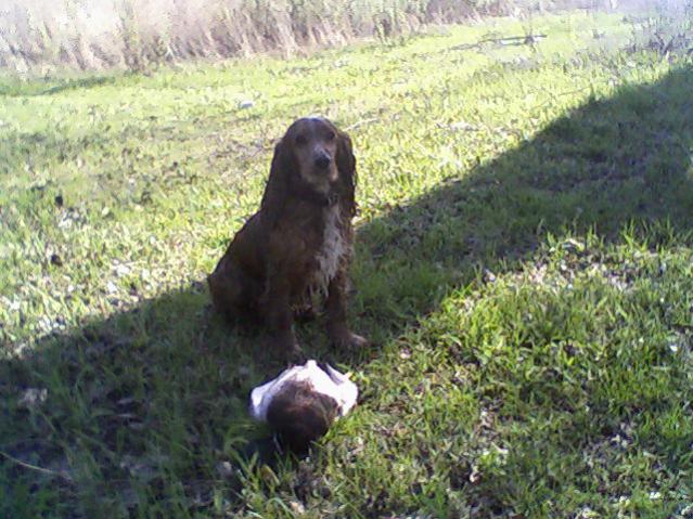 Собака работает только на подачу. Трудно было спаниеля приучить, но получилось. Сидит рядом и ждет своего часа. Клещей кстати сняли всего 2-х в этот выезд. Получаеться уменьшилось поголовье. Первые выезды больше 10 попадалось. "Барс" рулит.