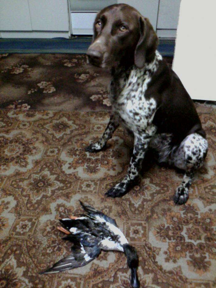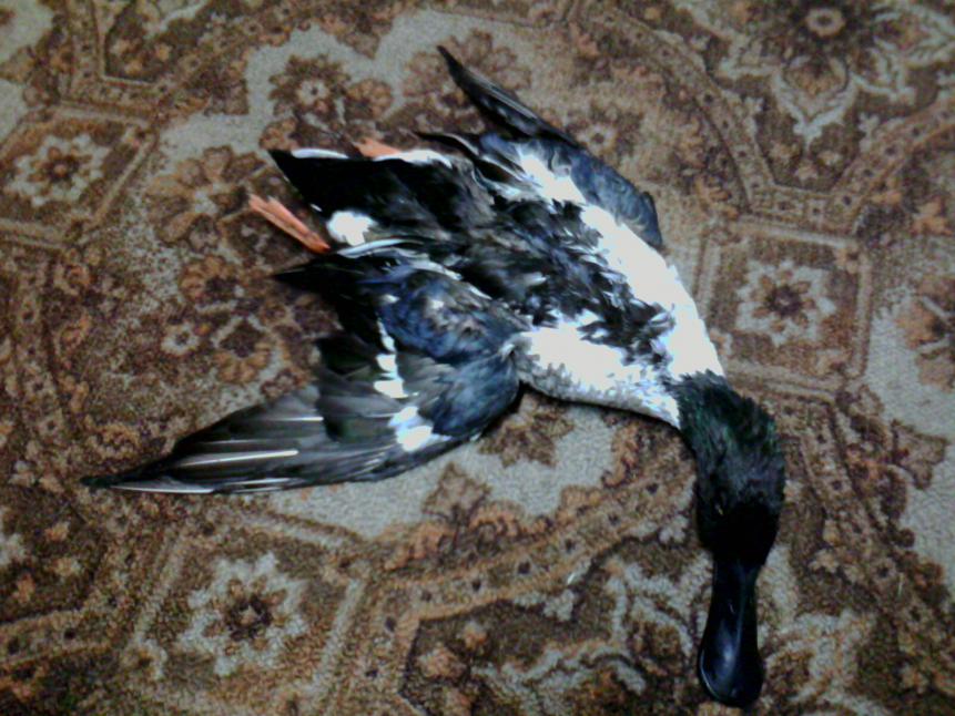 Сижу сегодня в шалаше на заимке.Маню Дабл Настей.Пес сидит рядом. Подсадная молча плавает посреди лужи,жрет нажраться никак не может. Вдруг на нее пикирует не понять какой селезень.Стреляю,пес достает приносит.Смотрю широконоска.Странно конечно,что он среагировал на звук этого манка, самки у них кричат по другому.Пес от радости чуть подсадную заодно с ним по дороге не прихватил,а надо бы.