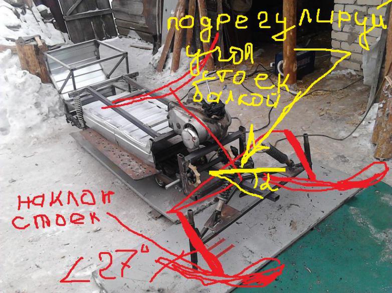 передняя подвеска уже готова, все прикручено и приварено.угол есть. осталось лыжи.