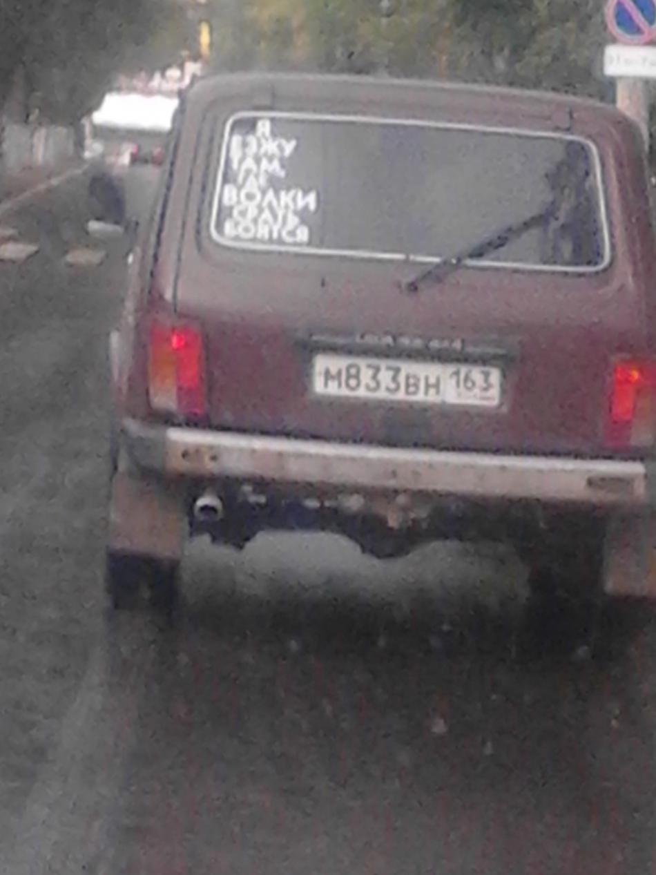 "Езжу там где волки срать боятся"(написано).