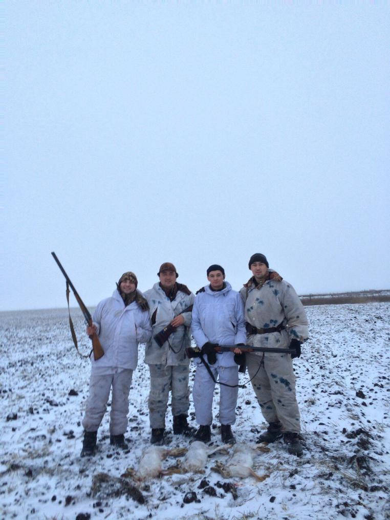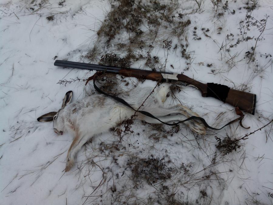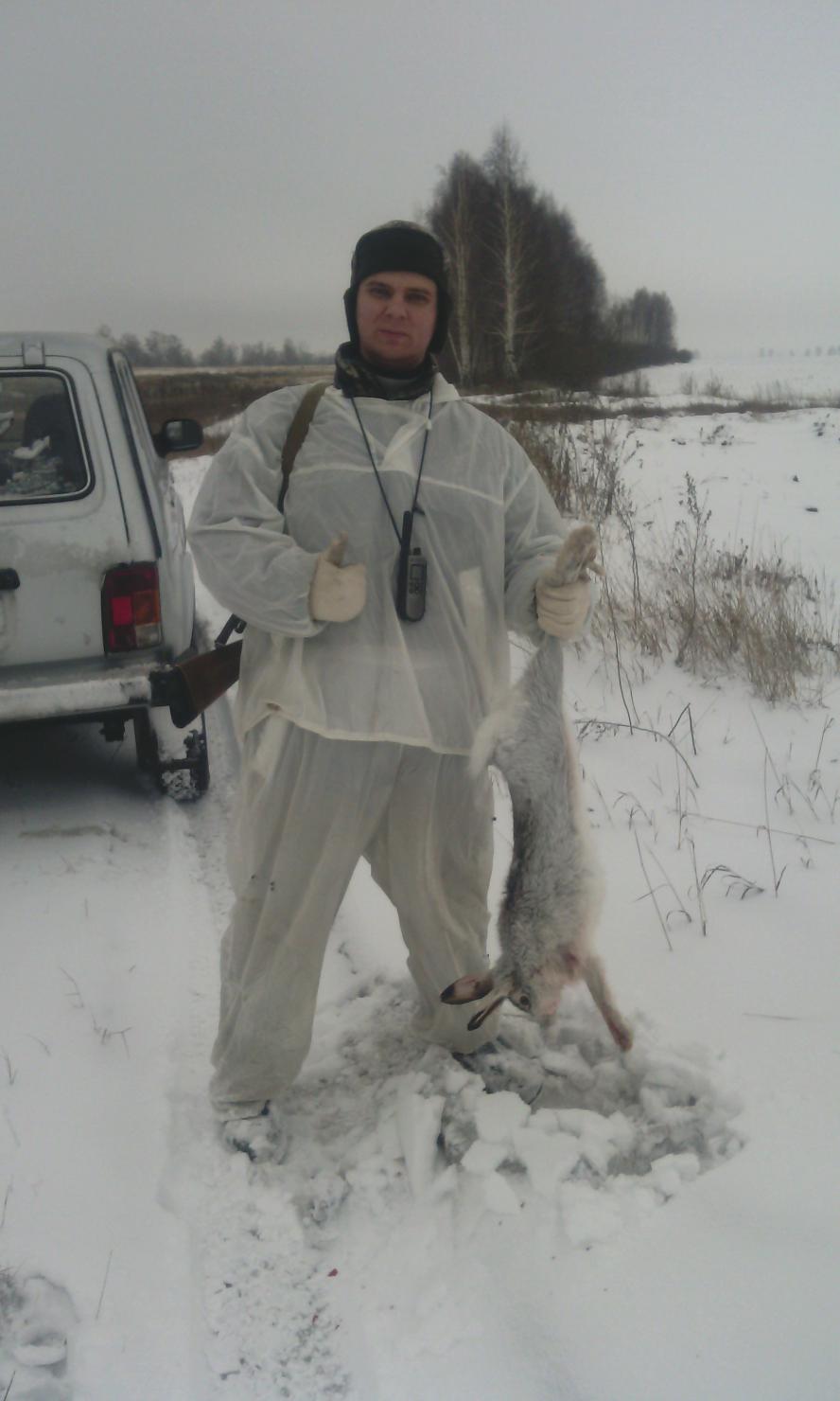 Ну наконец дождались снега. У меня все со-охотники спрыгнули. Пришлось ехать одному. В 9 приехал в угодья, в 9-30 нашёл первый след и начал тропить, прошёл метров 300 зай свернул в овраг и начал двоить. Я вокруг него 2 раза прошёл пока скидку нашёл, подъем, выстрел. Есть! В 10-30 уже домой двинул, дольше ехал чем охотился. Пока обдирал палили со всех сторон, выстрелов 10 слышал. Был в Елховском ОДОУ.