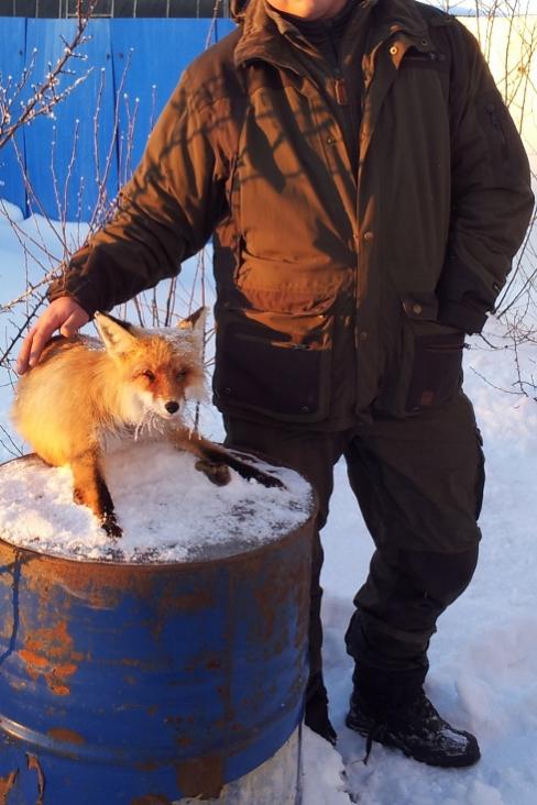 Взял я сегодня лисовина! Крупный собака! Охотился на приваде сделанной тремя днями ранее из внутренностей кабана!