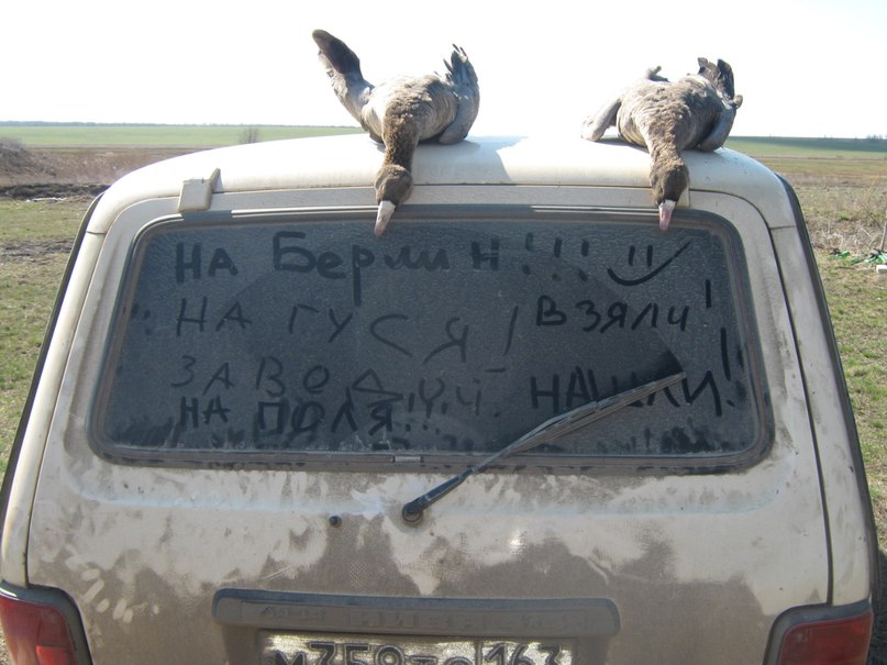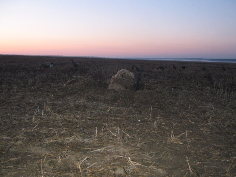 Пусть с опозданием, но тем не менее. Подгадали мы с отпуском практически на весь сезон, и вот 12 вечером мы отправились по заснеженной дороге в угодья. На базе уже был накрыт стол и нас ждали, выпили по пятьдесят и на боковую. Так началась для нас весенняя охота в 2013 году. На открытие народа было аж 8 человек поэтому посвятили 13 и 14 охоте на селезней. Нашими трофеями были и кряковые и свиязи, и свистунки и трескунки, мне посчастливилось добыть, на мой взгляд, самого красивого селезня-широконоса. В понедельник НИВА захрустела и весь день мы проторчали в сервисе. Во вторник нашли гуся на просе, вырыли окопы расставили объемники, но гусь не прилетел. Со среды с завидной регулярностью добывали от одного до пяти гусей в день. Манки и объемные китайские чучела (60 штук) делали охоту незабываемой, одну стаю даже посадили. Я тренировал терпелку и учился не шевелиться. Вывод гусь пошел под закрытие, 22 апреля был налет стаи около тысячи голов, видимо вспугнутая землепашцами, а следом был налет из которого я выбил двух гусей. Стреляли 3, расстояние от 7 до 35 метров. Фото не всех дней, спали по 4-5 часов, иногда сил не было вовсе. Часто спал в окопе. Всех с полем.
