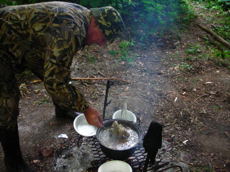 На розливе Быстреньково.И на катере и пешком.Четыре часа хода.