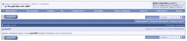 Вопрос к администрации форума: технический возможно сделать так что бы не видеть определенные темы или сообщения от определенного персонажа?