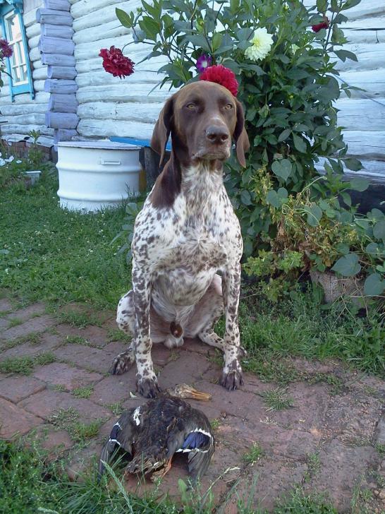 Я не и стрелял по утке.Пошли на перепела,но пёс через некоторое время, как обычно,отпросился сбегать напиться,обратно вернулся уже с подранком.Такие примочки у него каждый год по несколько раз случаются. Любит утку больше чем всю остальную дичь,хотя специально по утке я его не натаскивал.