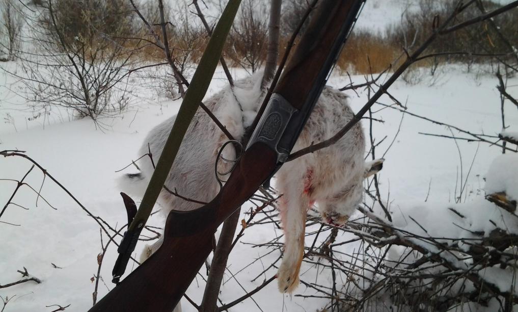 Скатались вчера с ребятами вчетвером и собачка, погода супер мороз и солнце день чудесный, первая посадка 2.5 км следов море подъема не одного идем ее с двух сторон двое стоят на конце . Разворот на 90 гр меняемся позициями,следующая посадка 1.3 км стоим в конце мы ребята потихоньку пошли, слышу начались выстрелы не с моей обзорной стороны вдруг вижу вылетает заяц из посадки и тут его берет с одного выстрела Иван, настроение поднимается.Через метров 50 собачка поднимает еще одного и бежит следом за ним, стрелять не стали дабы не угробить собачку на середине поля зайц убег. Когда ребята подошли, Сергей поведал о своей стрельбе, куры в подсолнухе были от выстрела поднялся заяц и напролом через посадку вышел на Ваню. Следующие 3 посадки впустую, на 4й поднимается еще один бъю 2 выстрела один мимо другой подранил но не добил по полю пошел в другую посадку, мы с Сергеем по следу за ним а ребята на следующую, петляли петляли по посадке так и не добрали, след по снегу лапу волочил. Уже темнело подняли еще одного, но .... в итоге 4:1 но это не главное