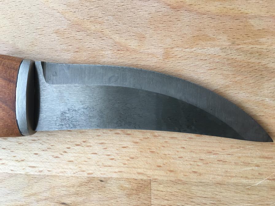 У этого сталь UHC (ultra high carbon). Основная беда - постоянно нуждается в смазке, смазывал 3 недели назад, вот сейчас достал, уже капельки конденсата выступили. Нож разделочный, поэтому никакими консервирующими спреями не пользуюсь, смазываю оливковым маслом. В ножнах (родные у него - кожанные) хранить нельзя, или отдельно или на подставке, хотя есть вставки из кайдекса. Забыв его в снегоходе, считай кранты, за рубль можно будет отдавать ). Я забывал, еле спас: