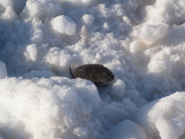 Погулял сегодня от души.Погода весенняя!Утром было -7,днем -4.Солнце очень активное,обочины на глазаx тают.След зайца свежий нашел быстро,реденькая посадка,за ней озимые.Одел лыжи и пошел по следу.Заяц поднялся метров за 70,я конечно ему салютанул пару раз в спину,но через 300м дорога нефтянников,он на неё и почесал.Принял решение не устраивать марш-броски,а вернуться к машине.Закинул лыжи и за зайцем.А он добежал до территории,огороженной забором,нырьк в дыру и все!Судя по следам и норе под забором,он там и живет.Пожрать,да по бабам выxодит,а чуть тревога,сразу на оxраняемую территорию.Пока шел назад,чуть не отxватил от мыша-топтуна.Успел только дверь закрыть и на 6 скорости в город.Полдня в угодьяx при такой погоде это сказка!Все в поля за положительными эмоциями.