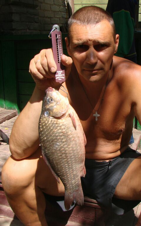Итак.. Половину отпуска провел у тещи на Донбассе в Луганской области. После недельной дегустации виноградных напитков тещиного производства ( заслуживает отдельной темы) провел разведку местных водоемов, пыток местных рыболаев, сторожей ставков. Покупать на хищника еще ворох снастей абы каких задушила жаба (своих два чемодана дома), потому решил в отпуске себя посвятить, а заодно приобрести первоначальный опыт, легендарной рыбе: КАРАСЮ. По завереннию местных, карасьу них знатный и его "богато". День на покупку и монтаж снастей, и вот сынищу в авто, ведро прикорма в багажник и вперед. По плану вечерка с ночевой и утрянка. Водоем. Платник с приличной акваторией, цена 75гривен (300руб) за одну снасть или 300гр за место (1200руб) и сколько хочешь забрасывай. Из рыб КАРАСЬ, красноперка, сазан, амур, толстолоб (нереальных размеров), окунь, судак, щука, сом. Цена на хищника со спином 50гр на день, 200руб! На следущий год оторвусь, палатку себе там поставлю и буду жить. Снасти. 2 китайских стеклопласта 2,7 и 3м, под стать им катуханы. Кормушки по 20гр, 2 поводка коротких из плетннки, крючки N12. На все потратил гривен 200. Прикорм пшенная каша с прикормом на карася. Насадки пенопласт, сухое тесто с ароматизаторами, кукуруза, мини-бойлы. С вечера был полный ОП. Но он был компенсирован запахом трав, ярким звездным небом и почти отсутствием комаров. Расстелили прямо на травке покрывало, бросили подушку, накрылись с шестилетним сынищей стареньким одеяльцем и вдыхали-пили эту красоту,уходя в нирвану. Колокольчики не тревожили, ну мы и притопили... А с рассветом началось... Какие это были КАРАСИ!!! самый "маленький" на полкило, а главный ровно 1кг! Решили заканчивать и домой к мамке, но решили с сыном крайнего изловить - десятого. Долго ждать не пришлось. Поклевка, размашистая подсечка и........ визг китайского фрикциона. Ой, мама! Вот это дурь и сила в рыбе! Щуканы отдыхают! САЗАН! Минут 20-30 (со слов соседей и сочувствующих) качал мне бицепсы и проверял мои нервы. Не рыба - зверь! А крючочек-то тоненький, слабенький, не форсанешь, а подсачек ему ток на голову примерить. Зрители помогли, наше покрывало в воду опустили, с надцатой попытки завел туда рыба и взяли... Рыбалка не просто удалась, она была от души. Итог 9 карасей от 0,5 до 1кг, и сазан на 4 200. З.Ы. Рулили мини-бойлы размером с крупный горох мед-кунжут. А ночью в лунной дорожке по водной глади расходились буруны и волны как от торпеды - толстолобы!