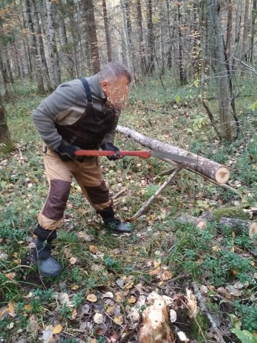 Для ходовой охоты как бы не нужны такие девайсы, но для жизни в лесу очень удобны. Сделаны своими руками. Топор друга переделан из топора для Советской армии выпуска 1952 года. При Сталине твердость каждого топора проверялась дважды: клинок и обух. Рукоять моей пилы тоже самодельная. Полотно японское. Шайтан-пила. У друга такая оригинал. Козлы? Ну ессно самодельные)). Хотел разместить в полезных самоделках, но тут похоже ближе к теме.