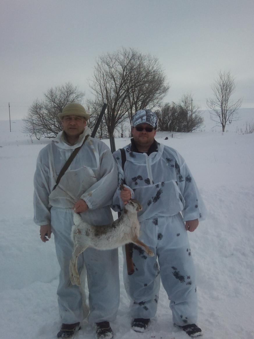 Ну и вот и я сегодня закрылся, выехал сегодня в 9 00 погода сказка прибыл на место охоты глаза разбегаются, следов тьма не знаю с чего начинать я один напарника нету работает, выбрал боле мене свежий след начел тропить, кружил он меня долга по оврагам и ведёт след к посадке ну думаю загонял меня заяц, подхожу ближе к посадке сдвойка скидка опять сдвойка думаю ну где же ты должен где то рядом быть подхожу ближе к подсолнуху вдоль посадок обрывается след не понял улетел что ли пригляделся к следу а он скинулся на 5 метров в сторону не чего себе прыжок и в подсолнух ну всё потерял в подсолнухе не найти, надо начинать снова искать новый след поворачиваю в обратную сторону, и только сделал пару шагов слышу сзади шорох поворачиваюсь а заяц от меня убегает, нет не уйдёшь думаю про себя вскидываю свою мурку расстояние примерно метров 30 целюсь по ушам выстрел бежит второй выстрел он ещё метров 20 побежал и лёг ну всё дошёл, вот так я и закрылся а погода нынче была проста прелесть подарок для нас всех на закрытье Поздравляю всех с праздником 23 февраля Фото в альбоме результат охоты. От меня маленький стих. Спит ещё медведь в берлоге,а в окопах слышно б.я! Это значит на пороге 23 февраля! Если ты мужик и воин,не барыга и не хам, наливай и выпей стоя русской водки 200 грамм. С праздником всех!!!
