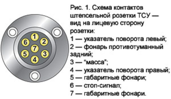 Решил сам поставить розетку фаркопа. Подскажите какие провода на разъеме к чему относятся (габарит, поворот и т.д.) по цветам или по номеру на колодке?! Левый и правый?