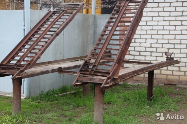 В продаже автомобильная металлическая эстакада в хорошем состоянии. Разборная (на болтах, шплинтах), с откидываемыми (наверх) трапами, практичная, удобная в эксплуатации и ремонте авто, не занимает много места. Находится в г. Кинеле. 12,5 т.р. т. 8927692414семь. Сергей. Небольшой торг - при осмотре.