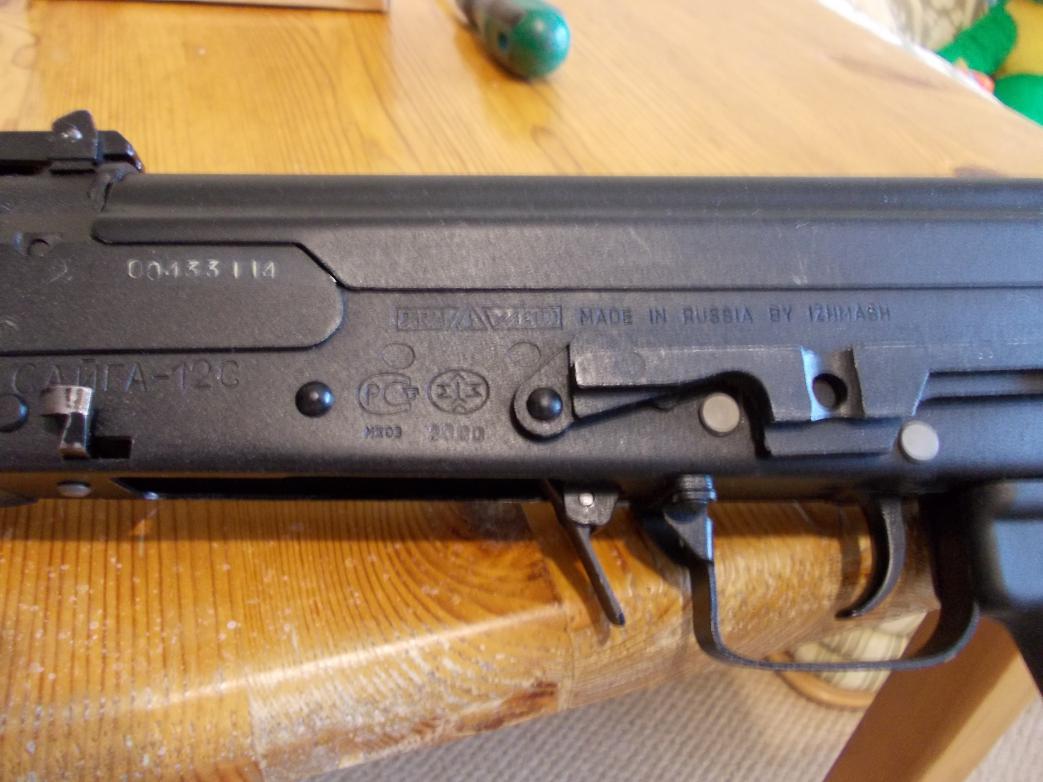 1.Сайга-12С со складным прикладом от АК74М и вентилируемой прицельной планкой.,к 12/76.магазин на 5 патрон.год выпуска 2000.ствол 580 сужение 1.0(настрел до 200)