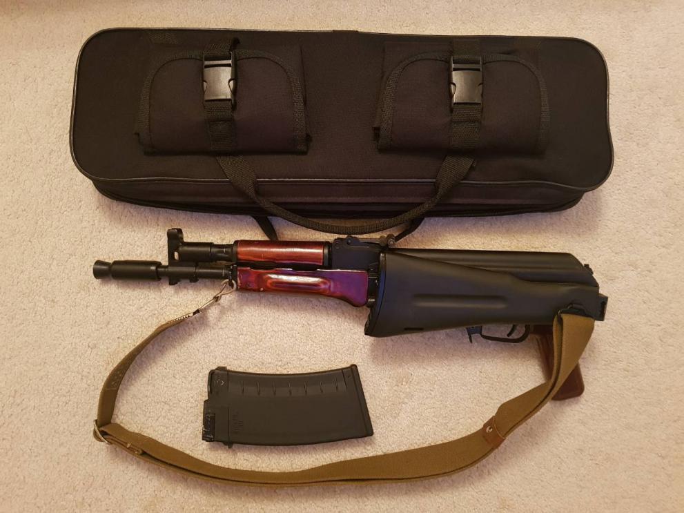 Был заменен рамочный приклад на пластиковый, установлена прицельная планка от РПК с коррекцией боковых поправок и ремень от АКМ. В комплекте отдам чехол.