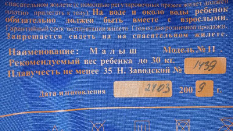 Продам детский спасательный жилет "Тритон", плавучесть не менее 35N (до 30кг) на совсем мальков - от года и лет до 3-4. С подголовником, застежка молния и опоясывающая ремень на замке, паховый ремень есть. На подголовнике светоотражающие элементы. Жилет сконструирован таким образом, что ребенок упавший в воду, всплывает лицом вверх, даже если он находится в бессознательном состоянии, и удерживается в таком положении, не прикладывая никаких усилий.