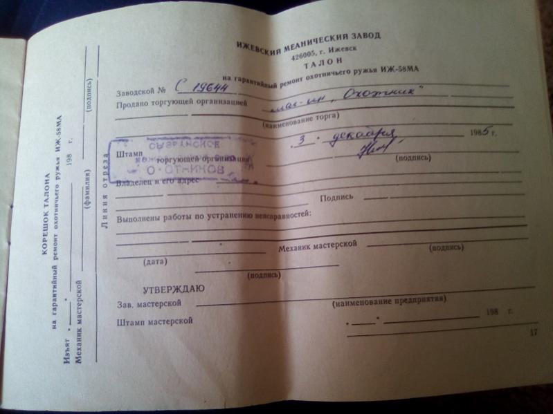 Один уважаемый в нашей деревне человек продает ружьё ИЖ-58МА, 12 калибр, 1985 года выпуска, состояние - очень хорошее, стреляли из него мало, сколько точно - не знаю, но состояние лба колодки - как у нового. В стволах тоже полный порядок. Территориально - Шигоны, осмотр при наличии зеленки и паспорта. Связь через меня. Тел. 8-927-216 - сорок пять - ОО . Хозяин немного приболел, поэтому договоренность об осмотре - по мере его самочувствия, прошу отнестись с пониманием. В начале октября, если ружье не продастся, уедет на хранение в полицию, поэтому посмотреть его будет проблематично.