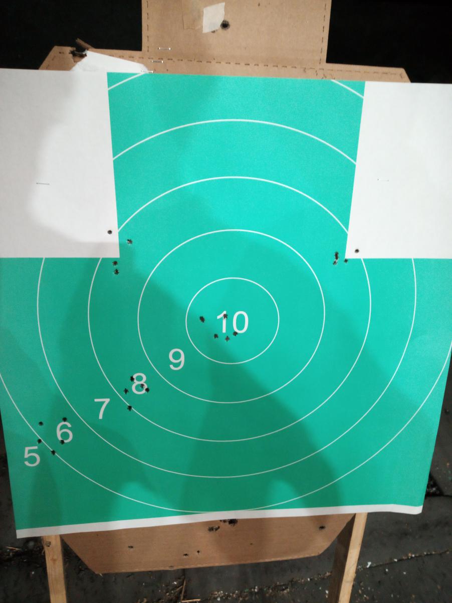 сегодня стрелял, там где фото по 5 выстрелов - попытка стрелять на точность, там где по 10 выстрелов - стрельба в быстром темпе (получилось точнее =)