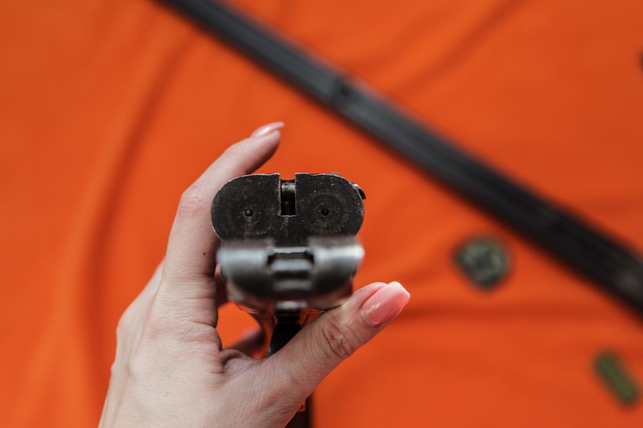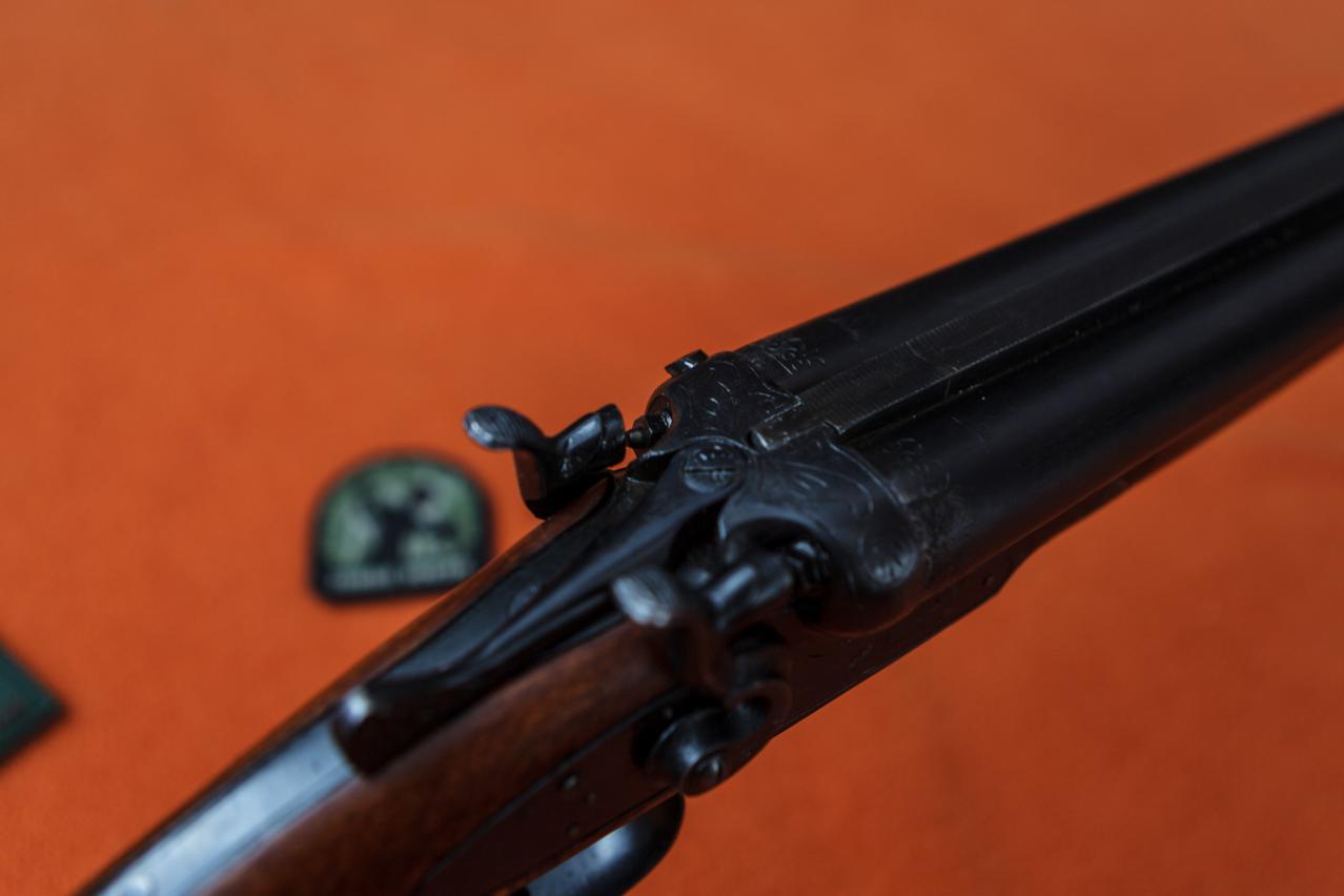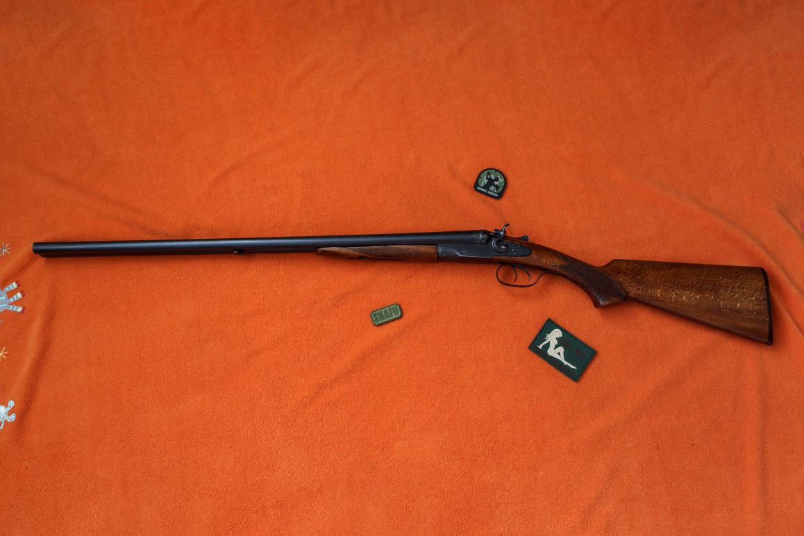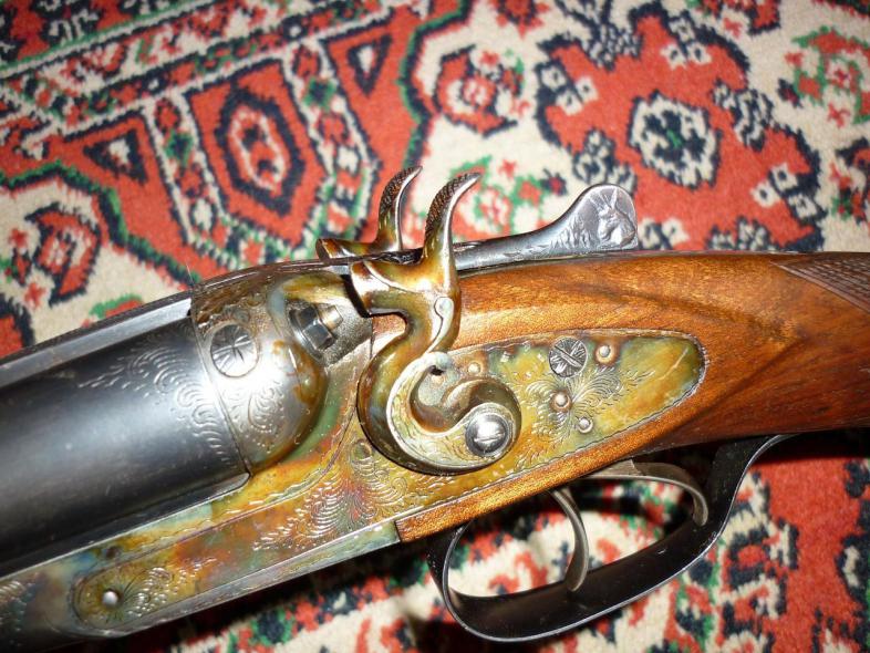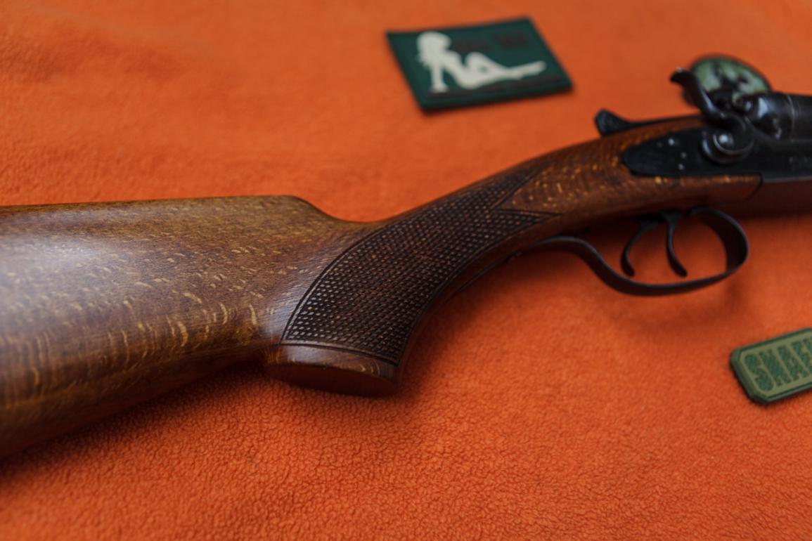 Душевное ружье. Цветную калку жалко зачернили. Дерево симпатишное, но от чего оно? Полупистолетка на современный лад. Для не посвященных вставлю 5 копеек. Правый ствол 0,5, левый 1,0. Сверловка 16,8. Вес в районе 3200. Типа Ап.