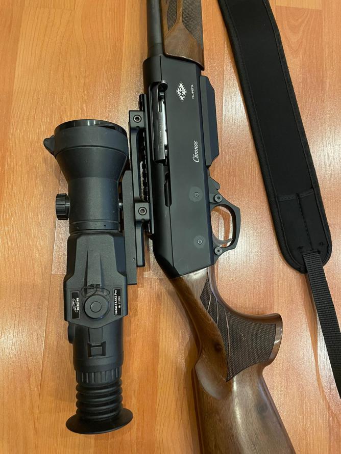 2. Тепловизионный прицел Dedal-T4.642 Pro . Матрица 640х480(17 мкм) и объектив 100 мм F/1,6. Все работает отлично, километра 4 наверное обнаружит все теплое от мышки до лося. Наверное и рассказывать именно за эту модель в линейке нечего, просто топовый прицел. У владельца примерно 8 лет.