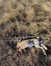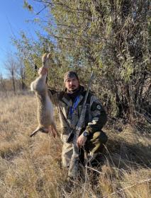 25.10 не смог проехать в намеченное место из-за грязи, поэтому решил топать от асфальта в другое. Это небольшая ложбина, заросшая шелковистой травой с холмом посередине и рядом "зеленка". Пошел по кругу вдоль границы участка "челноком". Головой крутил влево-вправо, но подьем зайца не увидел. Он мелькнул на вершине холма, идущего по середине всей ложбины и скрылся. Выбежал на холм, прошел обратно к месту, где заходил в ложбину, но зайца не обнаружил. Пошел обратно, челноча, но теперь с другой стороны холма. Почти дошел до конца ложбины, но что-то потянуло меня на сам холм, заросший высоким ковылем. Опять пошел обратно по холму, осматривая местность ниже справа. Прошел метров 20 и тут услышал звук подьема зайца. Встал метрах в 10, но я его не видел, пока он не свернул влево и не понесся вниз в сторону зеленки. Я его взял на мушку, как только он показался из травы. Боковой выстрел метрах в 40. Патрон "3" БК, попадание первым. Вес 4700.