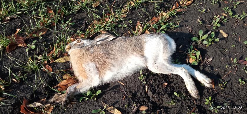 18.10.23 бродили с собачкой по ОДУ. Погодка была не очень, ветер сильный. Так вот на краю зеленки в траве собачка начала себя как-то причуяла зайца, я был метров 20 от него, приготовился, но никого нет, а собака что-то активно ловит в траве...